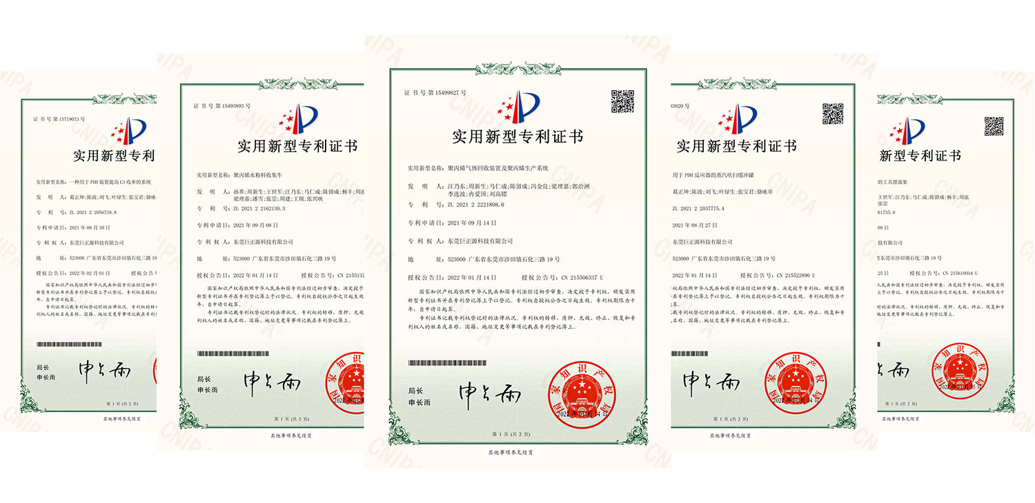 近日,经国家知识产权局审查,东莞巨正源科技有限公司的“聚丙烯气体回收装置及聚丙烯生产系统”、“聚丙烯水粉料收集车”、“一种用于PDH装置提高C3收率的系统”等23项实用新型专利正式获得授权。