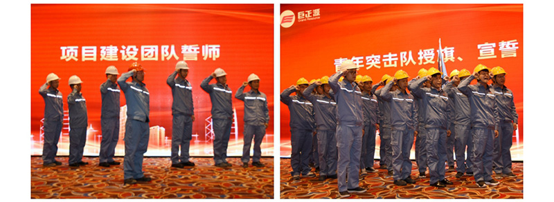 随后,会议举行了科技公司丙烷脱氢制高性能聚丙烯项目建设团队誓师仪式、青年突击队授旗和宣誓仪式。各宣誓人团结一致,带领团队,坚决按照公司要求的时间节点,按时按质完成任务,生产出合格的产品。青年突击队将弘扬“吃苦在前、乐于奉献、冲锋一线、争创一流”的精神,助力推进工程建设。