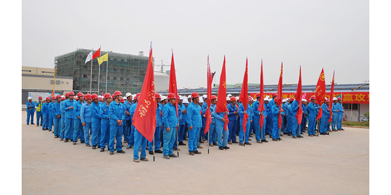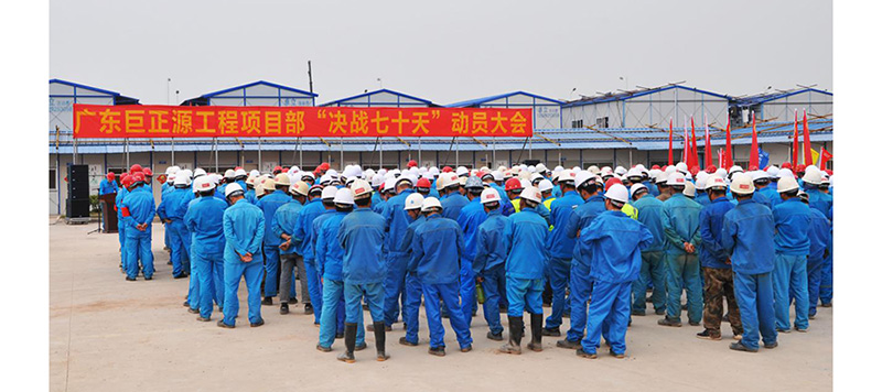 十建公司巨正源项目部项目经理林育庆作动员报告,提出了“决战七十天”劳动竞赛的目标任务主要是:完成土建地坪12000平方米,道路6500米,完成钢结构安装共计约500吨;压缩机安装19台;完成管道预制230000Din;完成电仪电缆1033千米、44千米。他表示,项目部上下紧紧围绕投产目标,强化项目管理,确保安全、质量与进度并举,全力打好巨正源项目冲刺攻坚战,完成由项目施工到生产准备的实质性转变,确保6.28开车成功。