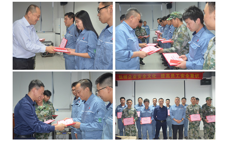 黄铁民董事长,王学成总经理,苏任棠副科长等领导分别为获奖的班组和个人颁发证书并发表了重要讲话,对盛源公司的安全生产工作表示了肯定。同时,他们要求公司不断加强安全管理团队的建设,重点把控好每一个流程、每一个环节;不断加强安全文化建设,持续提高员工的归宿感,凝心聚力,以更加优异的成绩献礼巨正源成立 20 周年。