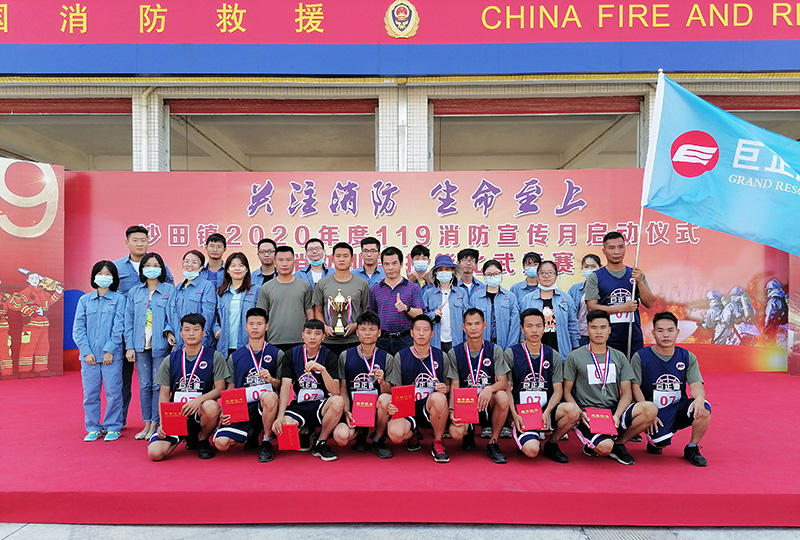 沙场秋点兵,群英大比武。11月9日,“关注消防、生命至上”——沙田镇2020年度119消防安全宣传月活动启动仪式暨消防业务技能比武竞赛在滨海湾新区消防大队隆重举行。来自辖区内的23家安全重点企业参加了比武竞赛。巨正源旗下盛源石化、科技公司组织消防队伍参加竞赛,分别荣获团队一等奖、二等奖,并在多个项目中取得了优异的成绩。