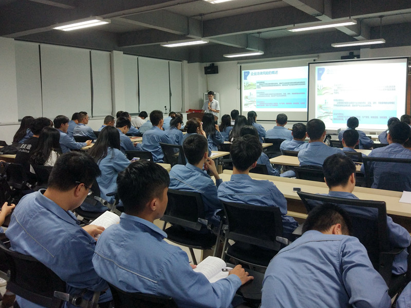 在培训过程中,培训老师通过“校园贷”、“宋喆职务侵占案”、“范冰冰逃税事件”、“长春长生疫苗”等热点事件深入浅出地为大家讲解了法律风险特征,并结合企业实际情况,列举了在企业设立、合同、知识产权、人力资源管理、采购、销售和诉讼等法律风险和防范知识,具有很强的针对性强、实用性。